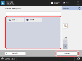 Para visualizar destinos que están configurados con un número de acceso, pulse [N.º de acceso] e introduzca el número de acceso.