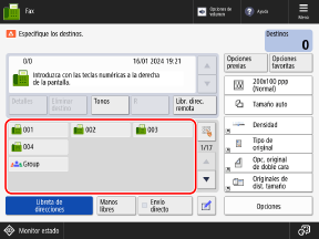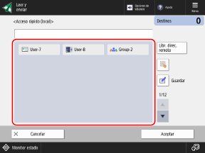 Puede especificar destinos registrados en la Libreta de direcciones ejecutando la Libreta de direcciones desde la pantalla de lectura (Leer y enviar) o fax.