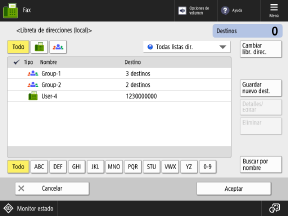 Para mostrar todos los destinos registrados en la Libreta de direcciones, seleccione [Todo].