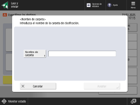 Pulse [Nombre de carpeta], introduzca el nombre de la carpeta que desee crear y pulse [Aceptar]
