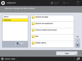 Configuración] en el panel de control. Utilice esta pantalla para configurar las diversas opciones del equipo.
