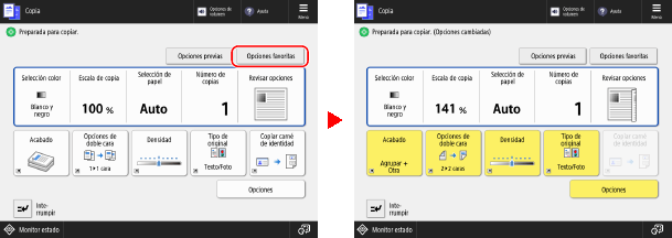 Si utiliza las funciones de lectura, copia u otras, recupere la opción según lo que necesite de las "Opciones favoritas" registradas.