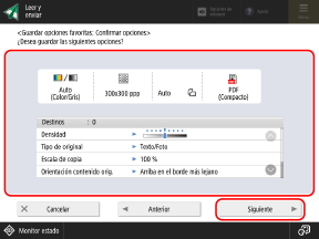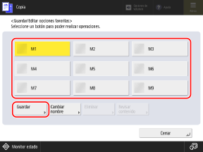 Seleccione el botón para el que desee registrar una opción y pulse [Guardar] o [Siguiente].