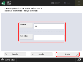 Introduzca el nombre del botón y un comentario, y pulse [Aceptar].