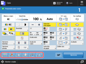 Puede reemplazar los botones siguientes mostrados en las pantallas de lectura (Leer y enviar), fax y copia con los botones de [Opciones], y ocultar las opciones.
