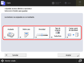 En la pantalla de copia exprés, seleccione el botón deseado y pulse [Guardar].