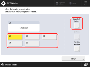 Seleccione el botón en el que quiere registrar el tamaño y pulse [Guardar/Editar].