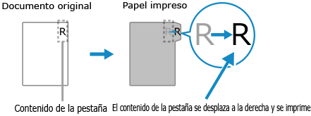 * También puede colocar un original normal y original separador juntos, y copiar en la parte de la pestaña del papel separador a insertar en las copias del original normal.
