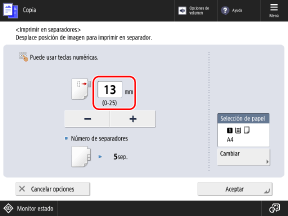 Pantalla de copiaAparece la pantalla [Imprimir en separadores].