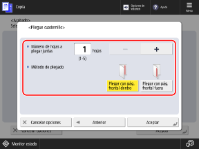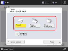 Aparece la pantalla [Plegar] o [Pliegue cuadernillo].