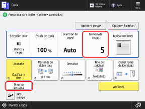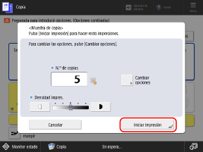 Antes de pulsar [Iniciar impresión], vuelva a introducir el número de copias utilizando las teclas numéricas.