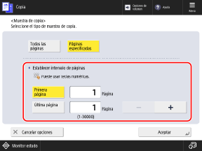 Introduzca los números de página de la primera y la última página, según los números de página de la copia acabada.