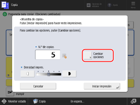 Pantalla de copiaAparece [Con opciones] debajo del botón de configuración.