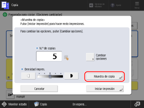 Pantalla de copiaAparece la pantalla [Muestra de copia].