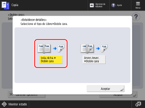 Pantalla de copiaAparece la pantalla [Doble cara].