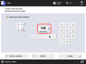 Pantalla de copiaAparece la pantalla [Escala de copia].