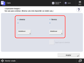 * Para configurar el dorso usando las mismas opciones que el anverso, primero establezca el anverso y luego seleccione [Igual que en anverso].