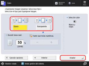 Pantalla de copiaAparece la pantalla [Superponer imagen].