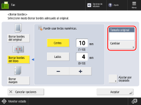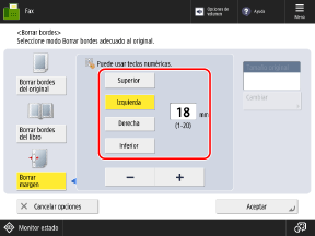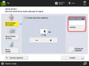 Pantalla de faxAparece la pantalla [Borrar bordes].