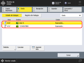 Seleccione un trabajo con los detalles que desee consultar y pulse [Detalles].