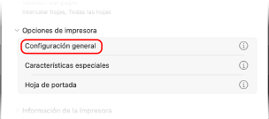 Para configurar los detalles de la hoja de portada, seleccione [Opciones de impresora]