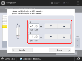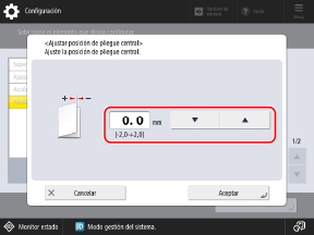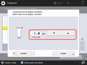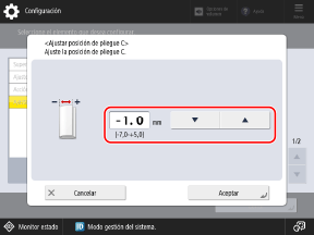 Utilice el panel de control para ajustar la posición de plegado del papel. No puede realizar el ajuste desde un ordenador mediante la IU remota.