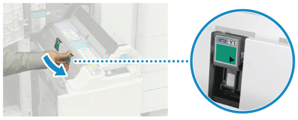 Sustitución de la caja de grapas de la unidad grapadora de cuadernillos (Solo para Unidad de Acabado de Cuadernillos AC)