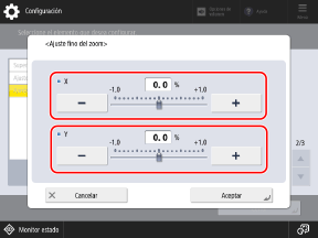 Desplace el control deslizante a la izquierda o a la derecha para ajustar la ampliación para [X] (horizontal) y [Y] (vertical).