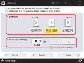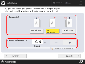 Seleccione el estado actual de la posición de grapado y establezca la anchura de desplazamiento.