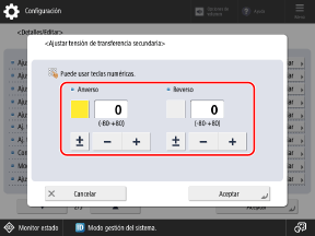 Pulse el botón [Anverso] o [Reverso] para seleccionarlo y, a continuación, introduzca el valor.
