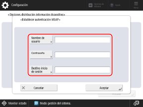 Utilice el panel de control para establecer la información de autenticación. No puede establecerla desde un ordenador mediante la IU remota.