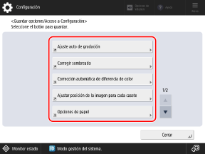 Configuración] en [Acceso directo Configuración] en la pantalla [Inicio].