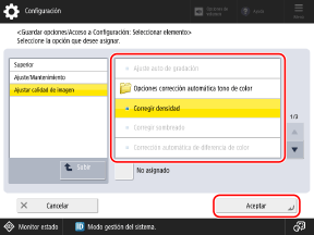 Seleccione el elemento de las opciones que desee registrar como acceso directo y pulse [Aceptar].