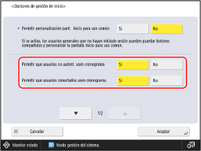 Establezca esta opción en [Sí] para mostrar el cronograma común a los usuarios sin autenticación cuando los usuarios no hayan iniciado sesión en el equipo o sean usuarios invitados.