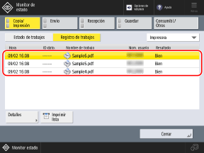 Seleccione el trabajo cuyos detalles desea consultar y pulse Detalles[].