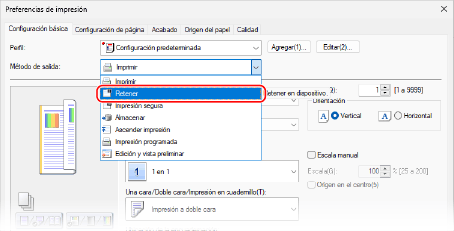 Previsualización de un documento en el equipo antes de imprimir (Retener)