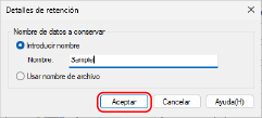 Establezca el nombre del documento a retener y haga clic en [Aceptar].