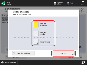 Pulse [Agregar firmas digitales] o [Agregar firma dispositivo].