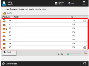 Para seleccionar una ubicación de almacenamiento distinta, pulse [Cancelar] en la parte inferior izquierda de la pantalla.