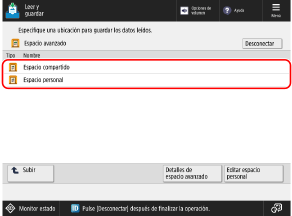 Pantalla [Inicio]Aparece la pantalla para seleccionar el tipo de ubicación de almacenamiento.