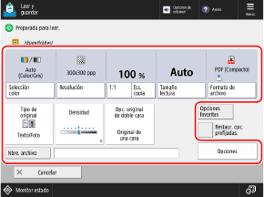 Opciones de escaneado* Los elementos que aparecen en la pantalla varían en función del modelo y las opciones.