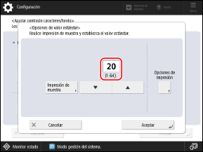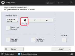 Se imprime la impresión de muestra y se visualiza de nuevo la pantalla [Ajustar contraste caracteres/fondo].