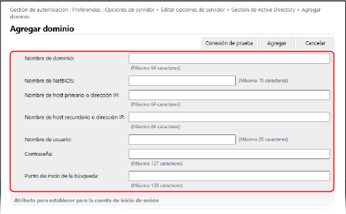 Especifique el nombre de dominio del destino de inicio de sesión en [Nombre de dominio] en [Nombre de dominio a establecer para la cuenta de inicio de sesión].
