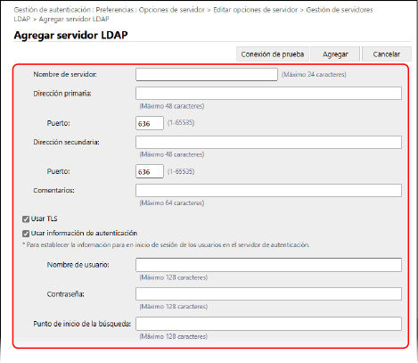 Aparece la pantalla [Agregar servidor LDAP].