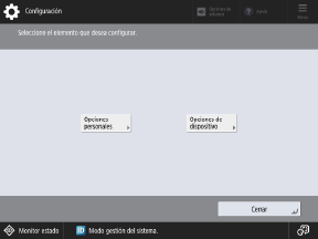 En función del elemento de menú [Configuración], es posible que se necesiten privilegios de administrador para ver o cambiar las opciones.