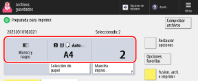* El número de archivos seleccionados se indica encima del número de impresiones.