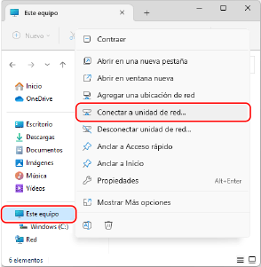Haga clic con el botón derecho del ratón en [Este equipo] y, a continuación, haga clic en [Conectar a unidad de red].