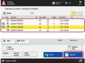 * Cuando se seleccionan varios archivos, se imprimen en el orden en que se han seleccionado (orden de los números de las casillas de verificación).