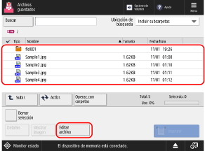 Seleccione el archivo cuyo nombre desea cambiar y pulse [Editar archivo]