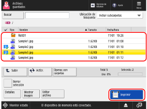 * Cuando se seleccionan varios archivos, se imprimen en el orden en que se han seleccionado (orden de los números de las casillas de verificación).